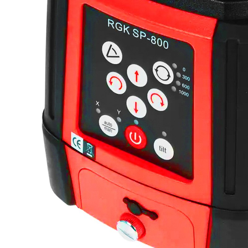 У многих моделей ротационных нивелиров RGK предусмотрена возможность изменения скорости вращения ротора. Максимальное количество оборотов рекомендуется выбирать при работе на улице и разметке на значительном удалении от нивелира. Чем быстрее вращается луч лазера, тем лучше его улавливает приемник.