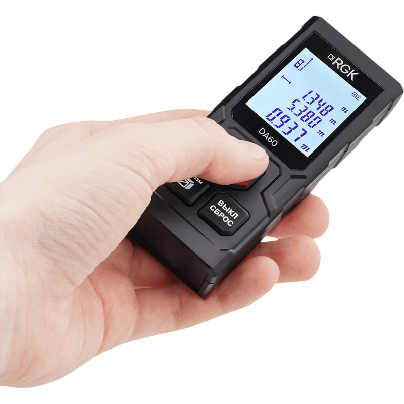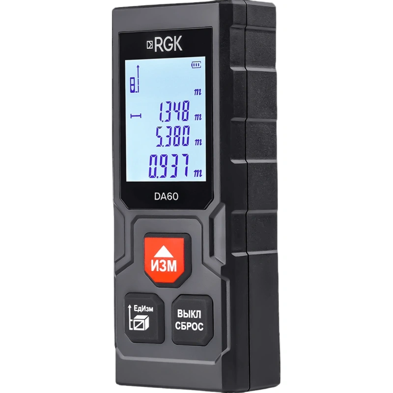 RGK DA60 – профессиональный дальномер с максимальной дальностью измерения 60 метров, точностью ±2 мм и экономным расходом энергии – одного комплекта батареек хватает на 8000 измерений.