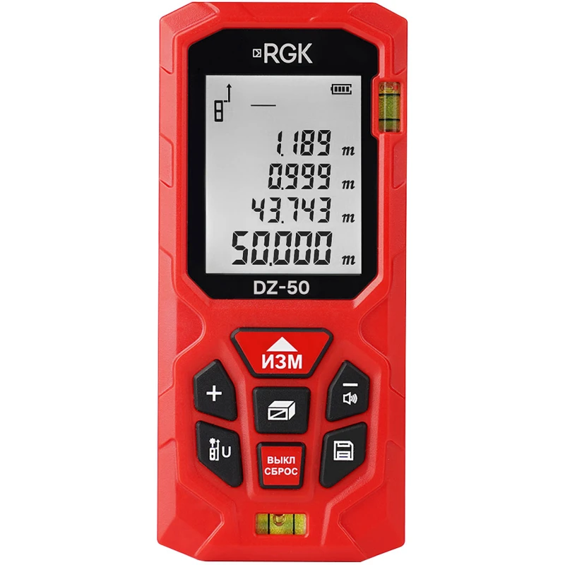 Лазерный дальномер RGK DZ-50 предназначен для определения дистанций и расстояний, а также для обмеров участков и объектов длиной до 50 м, с отображением результатов измерений в метрической системе измерений, либо в дюймах или футах. Прибор поддерживает режимы косвенных измерений и дополнительных вычислений, а также способен измерять высоту и горизонтальное расстояние – благодаря продольному и поперечному пузырьковым уровням, закрепленным на корпусе. При этом он обладает более доступной ценой, по сравнению с лазерными рулетками со встроенным инклинометром, являясь привлекательным решением для профессионалов и домашних мастеров.