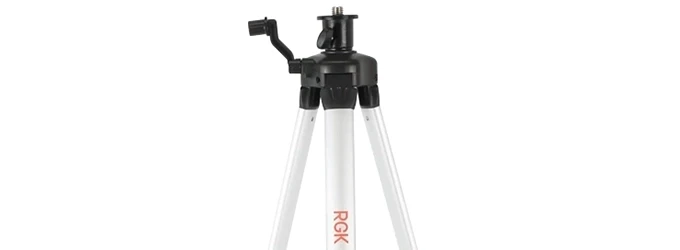 Электронный нивелир RGK LP-64G установлен на платформу с тремя ножками, каждая из которых настраивается по высоте. Это поможет выровнять положение нивелира относительно пола.