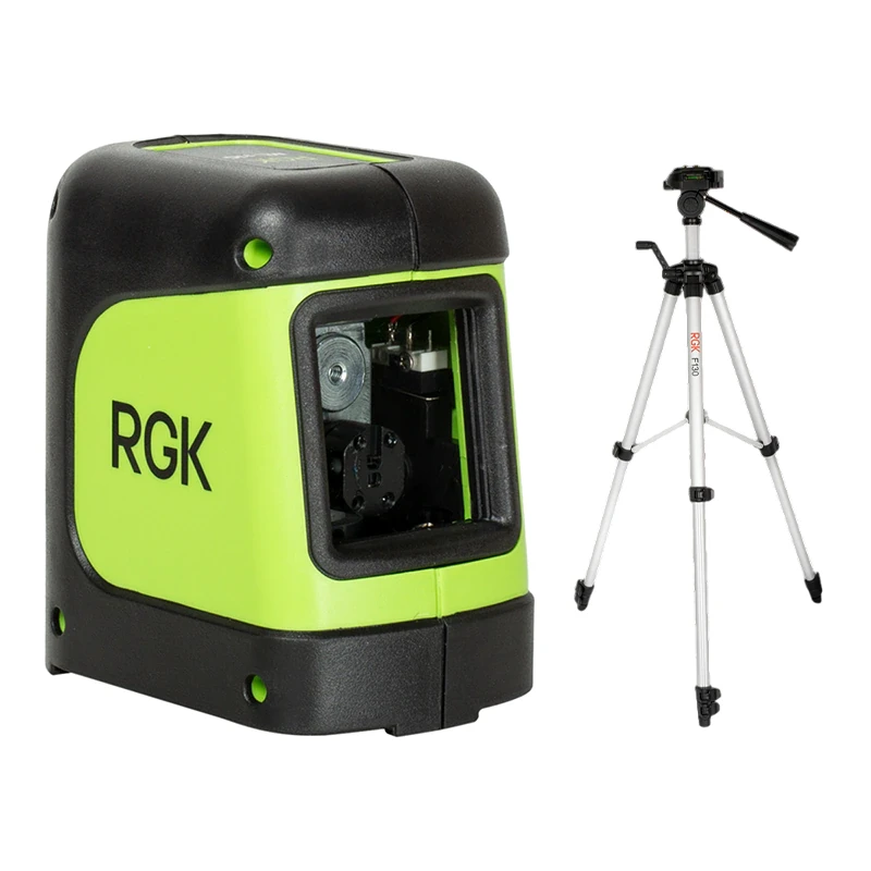 Лазерный уровень RGK ML-11G со штативом F130 — комплект оборудования для строительных и ремонтных работ. Нивелир выстраивает два луча зеленого цвета: горизонтальный и вертикальный. Поставляется с батарейками и транспортировочной сумкой.