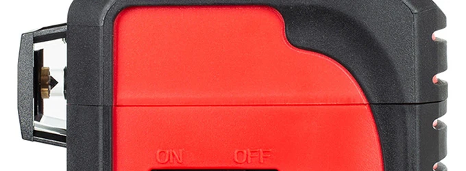 Встроенный компенсатор выравнивает лазерные линии, если прибор установлен на неровной поверхности. При отклонении модели больше допустимого диапазона самовыравнивания, лазерные лучи замигают. Во время транспортировки или для проецирования наклонных линий понадобится блокировка маятника. Она осуществляется одним движением пальца – достаточно сдвинуть боковой переключатель в положение Off.