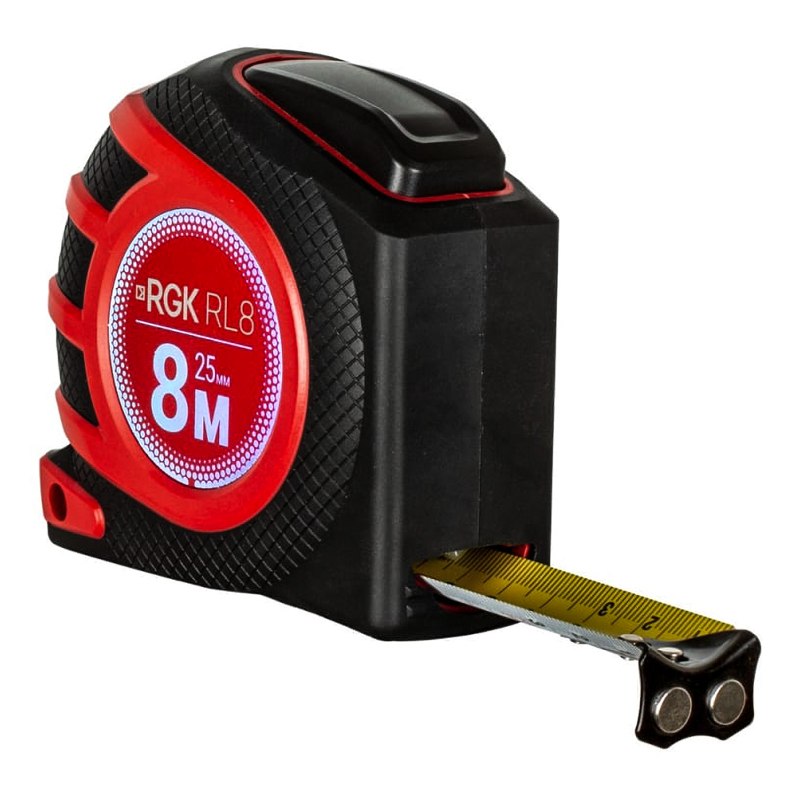 Измерительная рулетка RGK RL8 используется профессионалами и домашними мастерами для снятия размеров во время столярных, строительных или ремонтно-отделочных работ. Строительная рулетка внесена в госреестр СИ под номером 87196-22 и соответствует 2-ому классу точности по ГОСТ 7502-98.