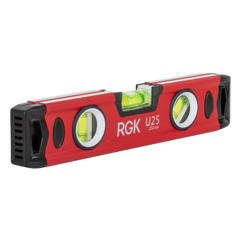 Уровень RGK U25 не займет много места и будет храниться в ящике с инструментами, так как его длина всего 25 см. В то же время это не делает его менее эффективным: он отлично подходит для решения поставленных задач.