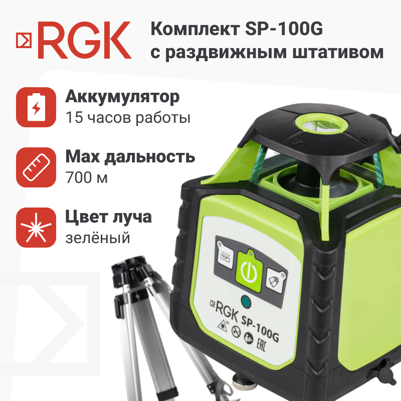 Ротационный нивелир с раздвижным штативом RGK SP-100G COMBO