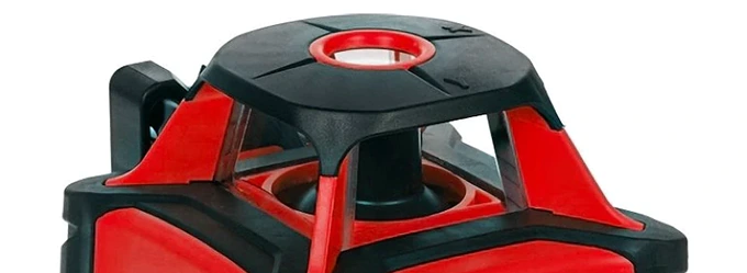 Ротационный нивелир проецирует замкнутую горизонтальную плоскость с разверткой 360⁰ и точку зенита. Скорость вращения излучателя регулируется с учетом интенсивности освещения и расстояния до объекта. Круговую проекцию можно сузить до сектора 10º, 45º, 90º или 180º, чтобы не мешать коллегам, работающим с лазерными уровнями. Отключение самовыравнивания позволяет строить линии под любым углом.